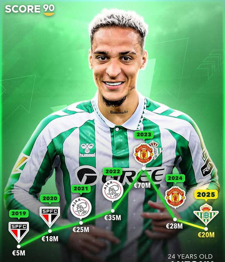 安东尼在穿上贝蒂斯球衣后展现出强劲实力,成为球队中备受欢迎的球员之一,其球衣销量甚至超过了前皇马球星伊斯科。尽管他目前只是租借球员,合同中没有买断条款,贝蒂斯必须与曼联协商以谋求永久转会。据英媒透露,曼联希望能够获得4000万欧元的转会费。